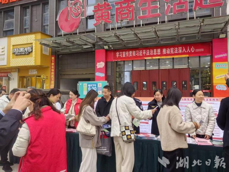 湖北日报客户端(通讯员:李刚 、朱立富、张久红、綦麟)为弘扬宪法精神,维护宪法权威,推动宪法全面实施,12月4日上午,由浠水经济开发区政法办牵头,联合南城司法所、派出所、精神卫生中心、农业农村中心、社区戒毒中心等多个部门单位,在黄商生活超市彩虹大道店广场举办“12·4”国家宪法日集中宣传活动。
