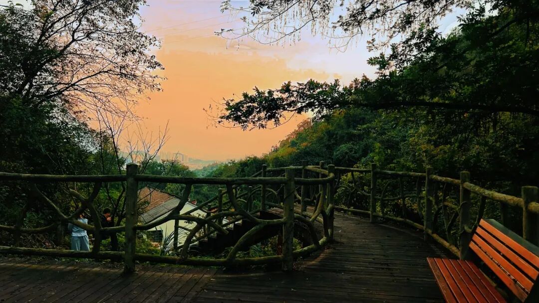 这条活力畅玩线真的藏满惊喜!东方古道彩虹步道从张家湾社区出发,脚下的彩虹标识像一条彩色丝带穿梭在山林间,初冬的林木褪去了盛夏的浓绿,换上了深浅不一的金黄,阳光透过枝叶洒下来,光斑在步道上跳来跳去,拍照巨出片~ 全程茂密林木环绕、空气清新,每一口呼吸都在给肺做SPA,草木与泥土的芬芳混着淡淡茶香,走着走着都觉得身心轻盈,1.7公里轻松拿捏。