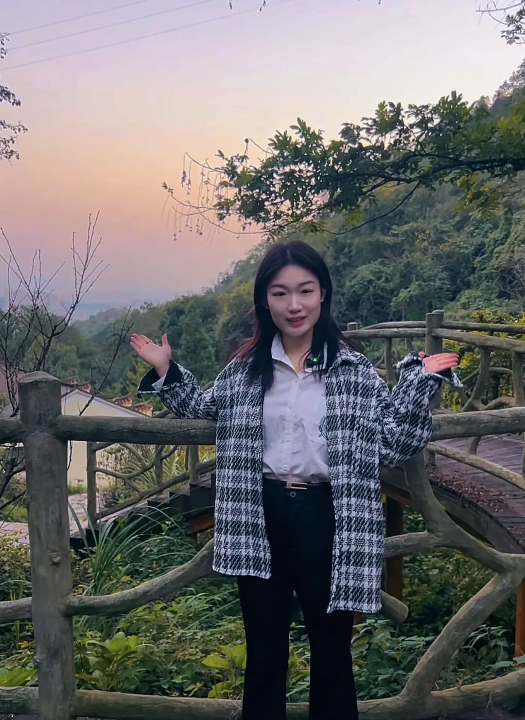 粉紫和金橙裹着远处的林峦