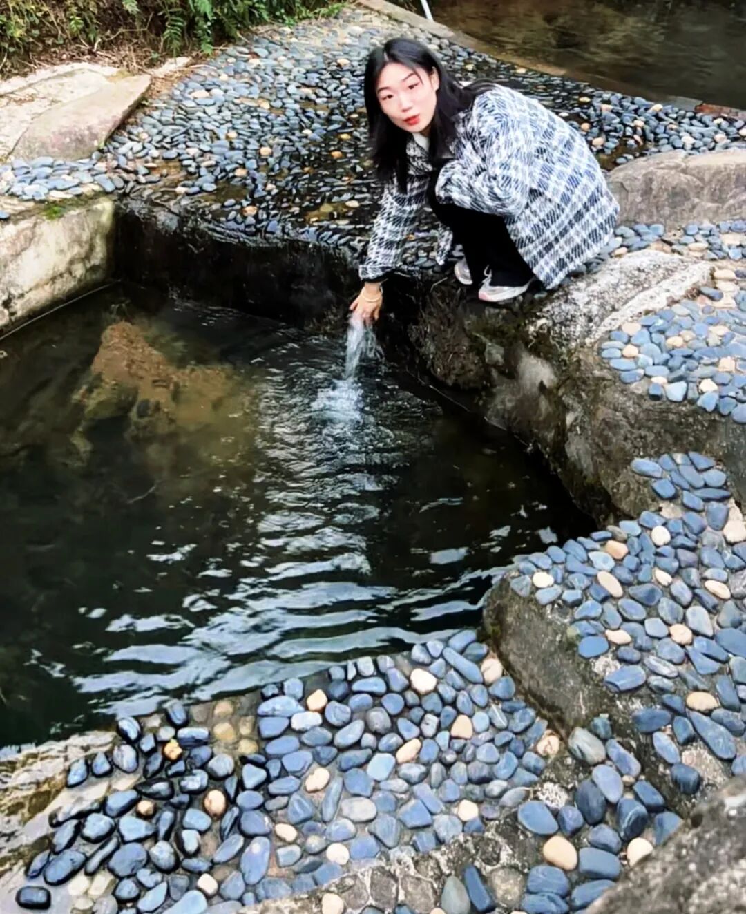 细流顺着石阶叠成迷你瀑布