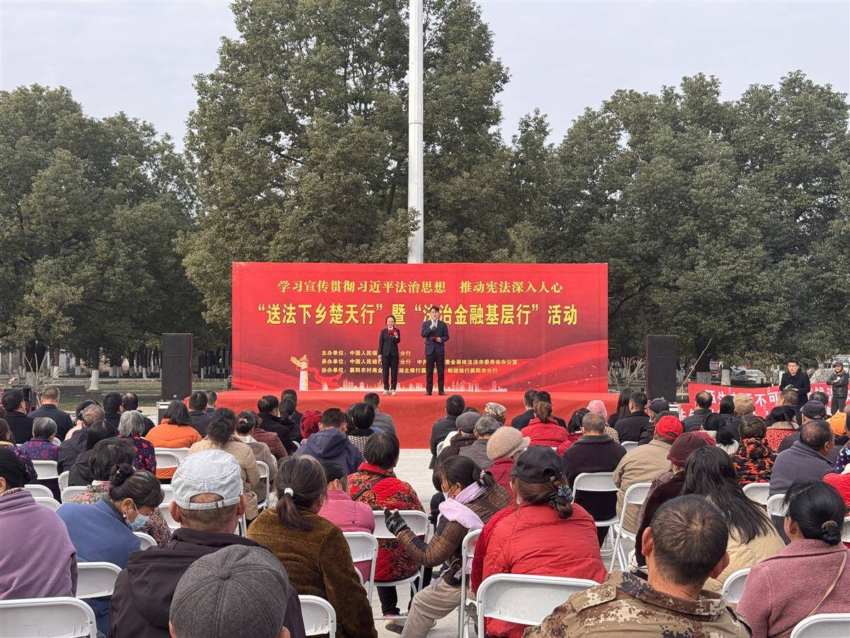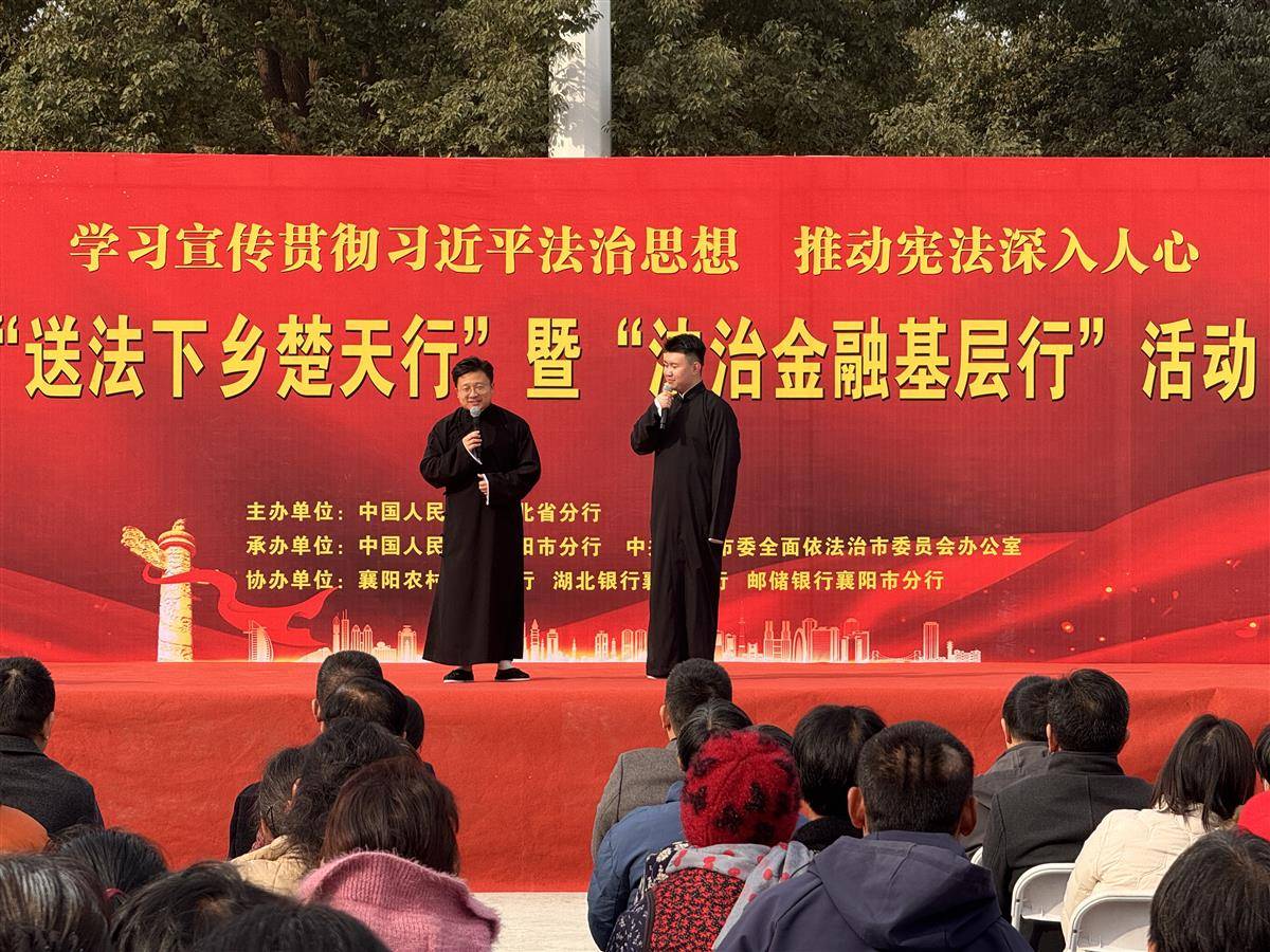 湖北日报讯(记者周升蕾、通讯员邵婧、王颖)12月4日,中国人民银行湖北省分行“送法下乡楚天行”暨“法治金融基层行”活动在襄阳辖内枣阳市吴店镇白水广场举行。