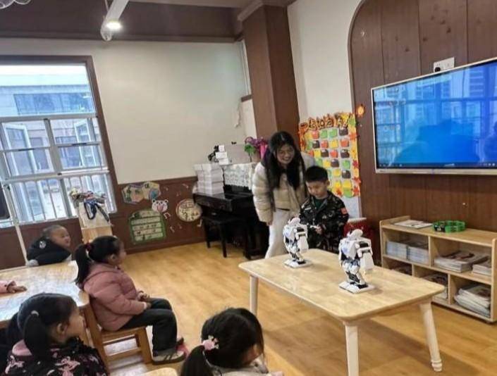 活动现场,武盈洁带来的机器人展示项目率先点燃孩子们的热情。在老师的操控下,机器人灵活地完成拥抱、握手、跳舞等动作,憨态可掬的模样让孩子们欢呼雀跃,争先体验。