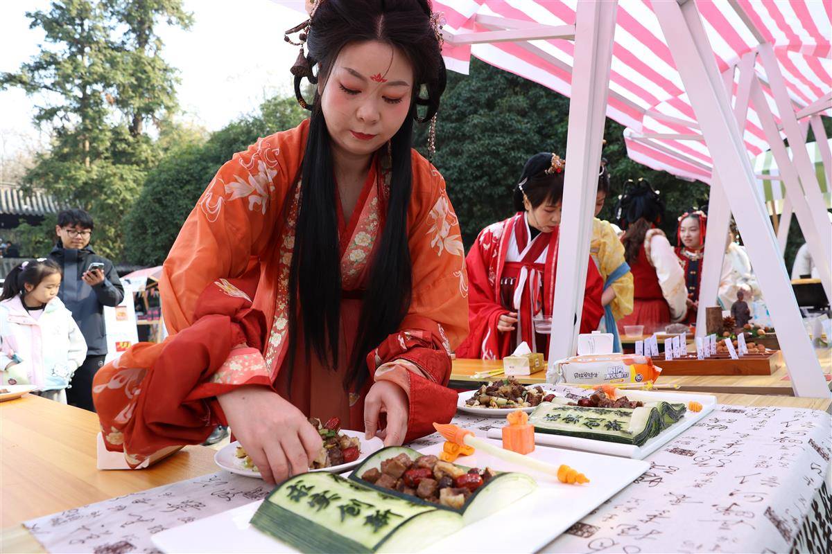 襄阳市中医医院派出多支药膳制作团队,制作“松间寻珍 四神归元”,选用中医经典名方“四神”——茯苓、山药、莲子、芡实融入肉丸,这道药膳可健脾养胃、固本培元。