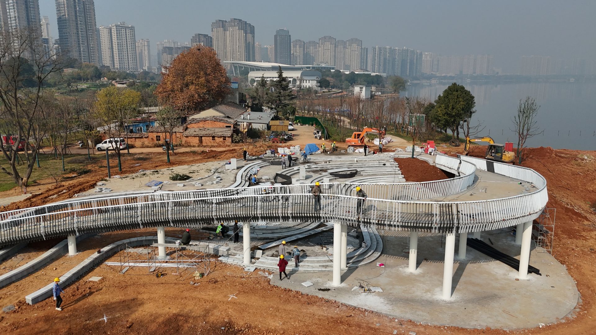 湖北日报客户端讯(通讯员陈婷、方诗琪)12月8日,站在尹家湖西南岸,一座形似新月、线条流畅的半弧形观景桥跃然眼前。它静静地坐落在湖畔,中间拱起,两段舒缓地接入岸边,为湖岸增添了一抹灵动与诗意。这便是即将建成的“晨光云桥”。