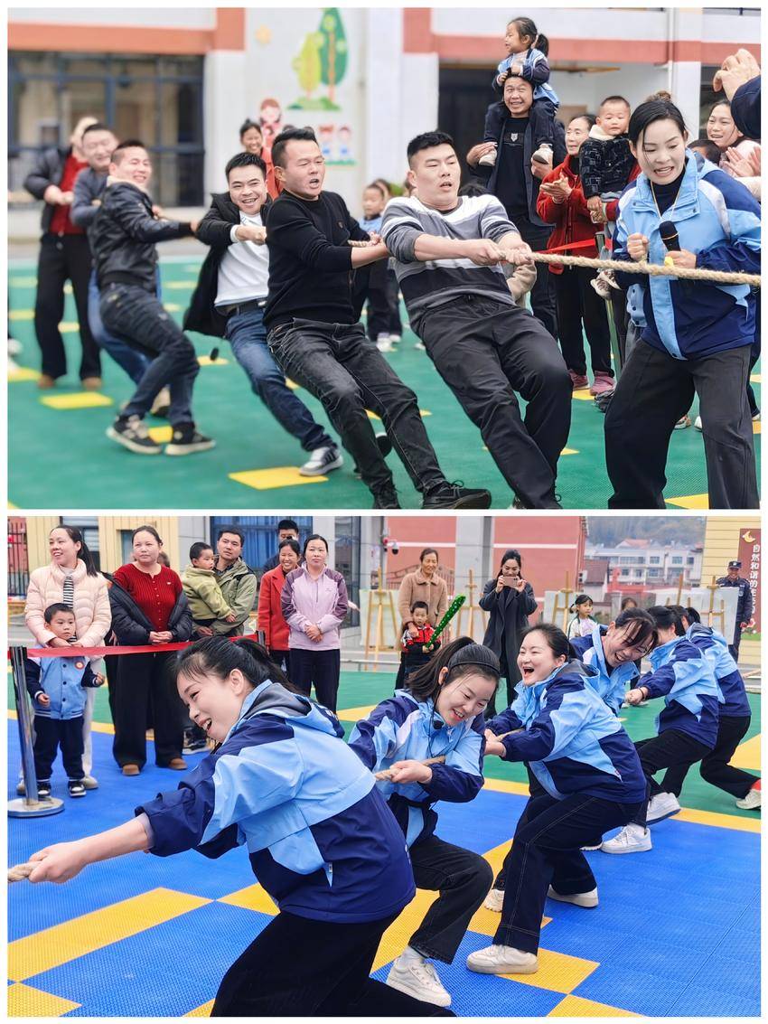 开幕式后,亲子互动环节迅速点燃全场氛围,“猪八戒背娃娃”“亲子旋风跑”“快乐赶集”等趣味亲子游戏轮番上演,亲子携手闯关,默契配合,汗水与笑容交织,温馨热烈的氛围感染着现场每一个人,随后的家长拔河比赛更是将活动推向高潮,参赛家长化身“大力士”全力以赴,赛场呐喊声、加油声此起彼伏,为孩子们树立了团结协作的好榜样。