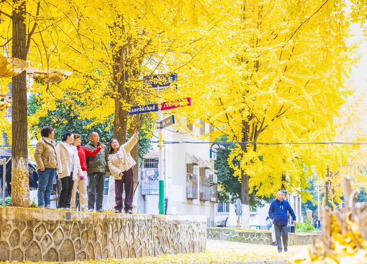 8日,下陆区铜花社区居民在铜花小区银杏园赏景。该银杏园已然成为社区“网红打卡点”,吸引居民纷纷驻足拍照。 记者 李航 通讯员 朱海 摄