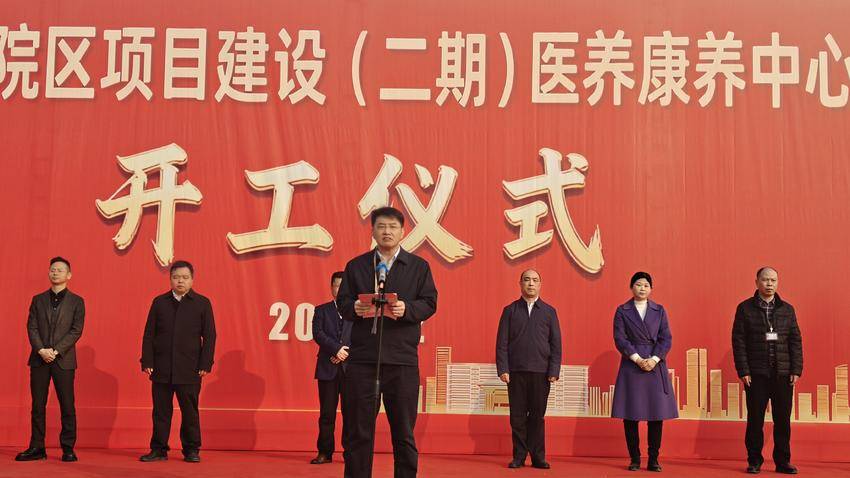 仪式由武穴市副市长蔡慧主持。武穴市中医医院党委书记吴志德首先介绍项目概况并作表态发言。他表示,该项目是医院推进“医养梦”战略的关键环节,获批2亿元国债支持,采用EPC模式建设。第一标段将建设2栋7层医养公寓及相关配套,建筑面积超2万平方米,计划新增医养床位280张,致力于打造集医疗诊治、中医康复、健康管理与生活照护于一体的现代化康养综合体。