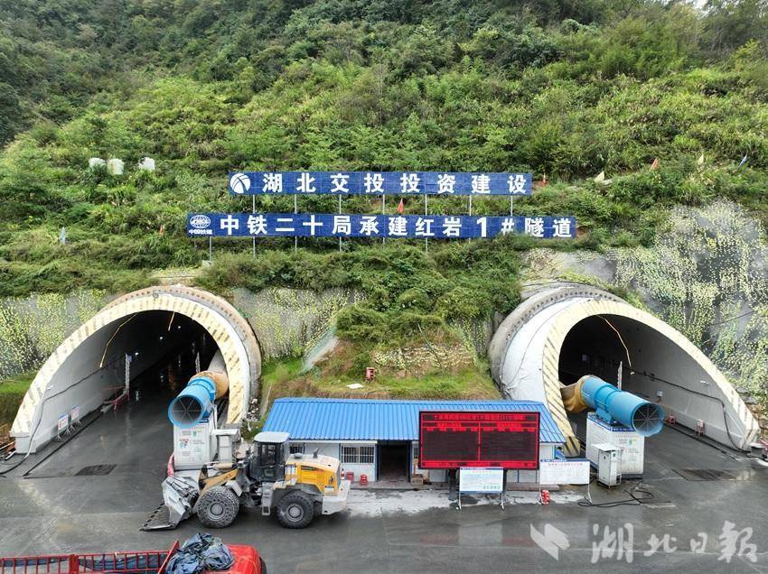 紧随其后,12月4日,红岩1号隧道成功实现双幅贯通。该隧道全长3955米,为全线第二条特长隧道,地质条件复杂,围岩松散易坍塌,出口紧邻悬崖且位于水电站库区水面以上52米,施工通道开辟异常困难。建设团队通过架设钢栈桥、凿山开辟2000平方米作业平台,破解“无路可进”的困境,全面推行全工序机械化施工,借助超前地质预报与控制爆破技术,确保隧道双幅平稳贯通。截至目前,项目隧道工程开挖初支完成率超85%,二衬完成率稳步提升,为后续路面及机电工程施工创造有利条件。