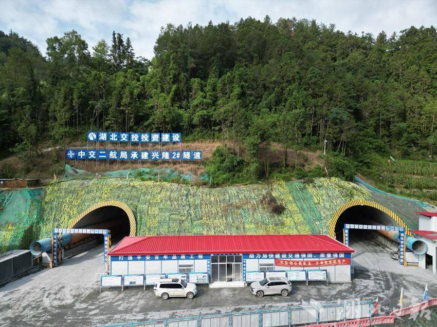 隧道工程作为项目攻坚核心,近期实现两大特长隧道关键节点突破。12月2日,全线最长隧道——兴隆2号隧道左幅顺利贯通,较原计划提前10个多月。该隧道位于竹溪县新洲镇境内,全长4375米,是典型的富水软弱围岩隧道,Ⅳ、Ⅴ级围岩占比超99%,先后9次穿越富水破碎带,岩体遇水易软化变形,施工难度堪称全线之最。项目团队创新采用“机械掘进为主、弱爆破为辅”的施工方案,引入智能挂布台车、双臂凿岩台车等隧道“八件套”智能装备,搭配超前水平钻机与地质雷达探测“双保险”,提前预判地质风险,通过“管棚支护+增大锁脚+早成环”优化工法,有效控制拱顶沉降,最终实现安全高效贯通。