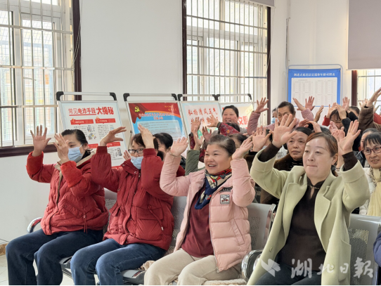 科普过后,氛围逐渐热闹起来。伴随着轻快的冬至主题音乐,工作人员播放手势舞教学视频,屏幕上简单易学的动作搭配朗朗上口的口诀,瞬间点燃了大家的参与热情。社区工作人员率先示范,抬手、转身、比心,每一个动作都充满活力。居民们纷纷模仿,从起初的略显生疏到后来的熟练流畅,现场化作一片欢乐的海洋。