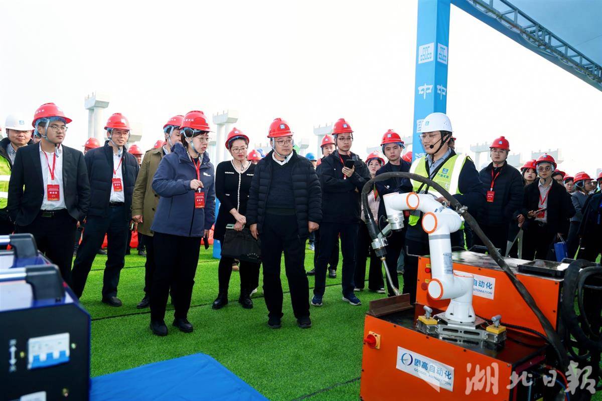 湖北日报讯(记者戴文辉、通讯员陈峥月)“我们使用钢结构焊接机器人,将BIM(建筑信息模型)信息转化为焊接路径,实时调整参数,一次探伤合格率超98%,单台日焊接量达到人工的3到5倍,焊材损耗降低10%。”12月10日,全国钢结构桥梁智能建造暨现场质量安全标准化观摩会在武汉举行,中建三局汉南长江大桥及接线工程HNTJ-1标项目经理黄华表示,通过构建“数字化管控、智能化装备、工业化建造”的智能建造体系,项目建设跑出“加速度”。