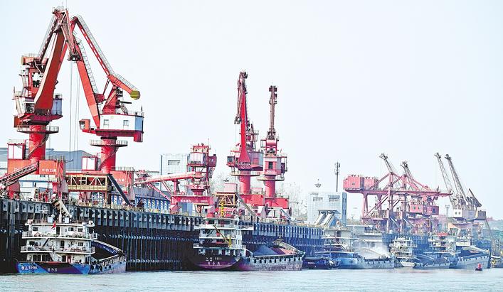 12月8日,长江宜都枝城段宁通物流港口,货船往来穿梭,岸吊高效起落,一片繁忙景象。据了解,宁通港今年全年订单已满,泊位持续处于供不应求状态。截至11月25日,港口今年累计完成货物吞吐量1028.7万吨,不仅突破千万吨大关,更完成了全年预设总目标的93.5%,较去年同比增长约17.5%。(湖北日报全媒记者 刘曙松 通讯员 黎文来 张红豆 摄)