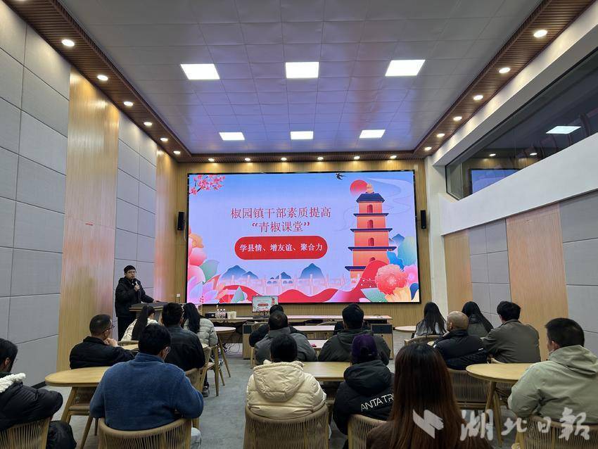湖北日报客户端讯(通讯员胡星 杨辉 刘玺)12月10日晚,宣恩县椒园镇组织开展了第五期“青椒课堂”活动。本次活动以“趣动展风采,活力满椒园”为主题,通过系列互动环节,着力提升干部综合素质,深化县情认识,增强团队凝聚力。