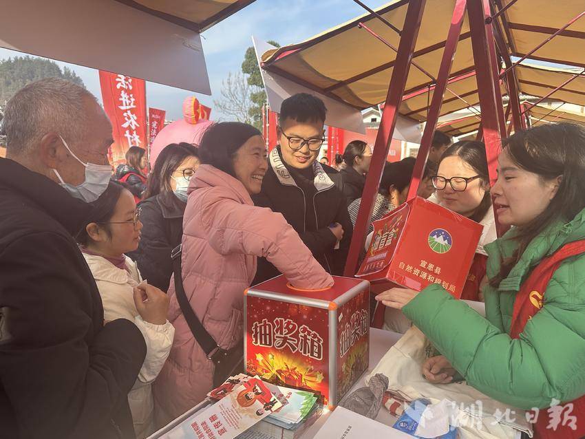 湖北日报客户端讯(通讯员 谭雷珍)“答对就能抽盲盒!”12月5日上午,宣恩县椒园镇黄坪村广场上热闹非凡。宣恩县自然资源和规划局普法志愿队在此开展“12·4”国家宪法日宣传活动,创新采用“答题抽盲盒”的形式,吸引众多群众踊跃参与。