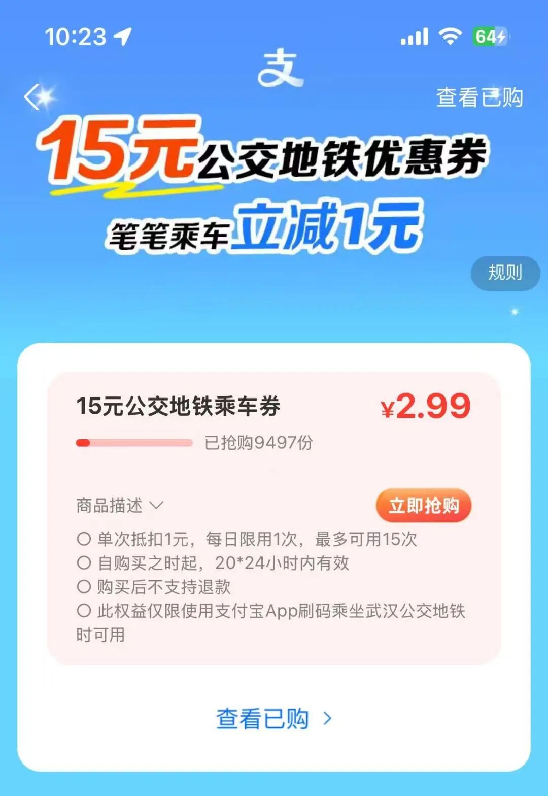 ③2.99元购15元公共交通通勤券包