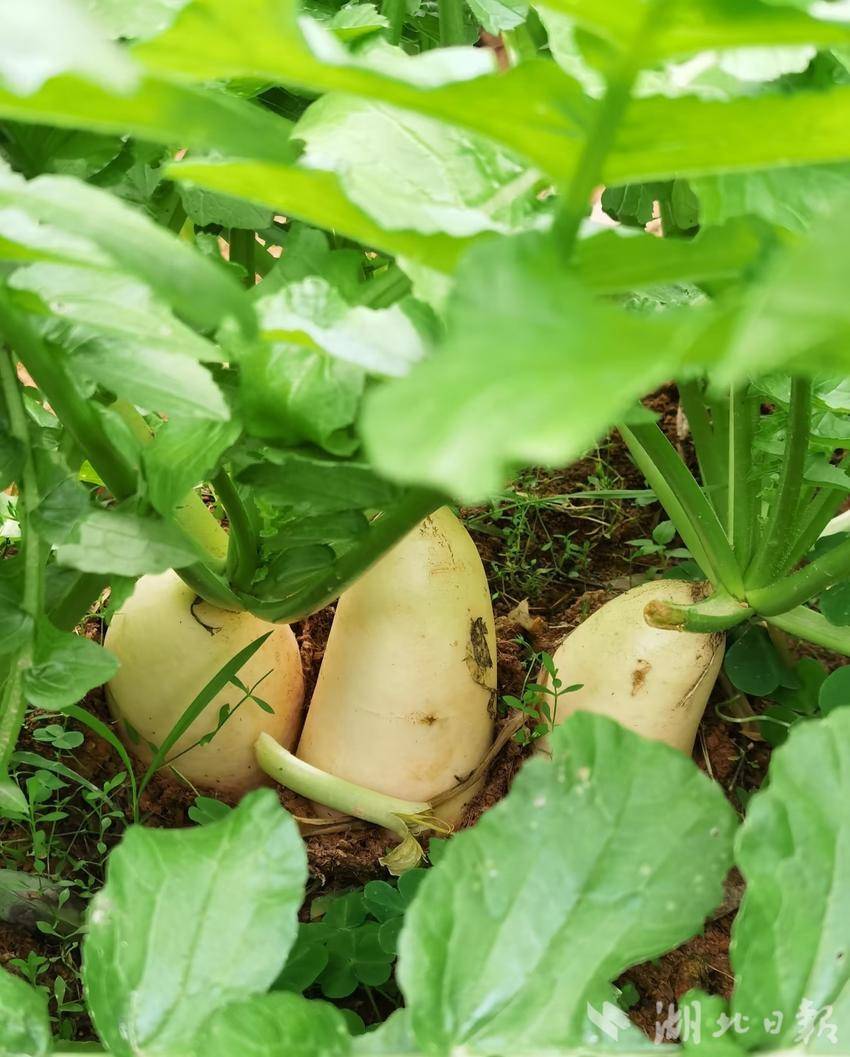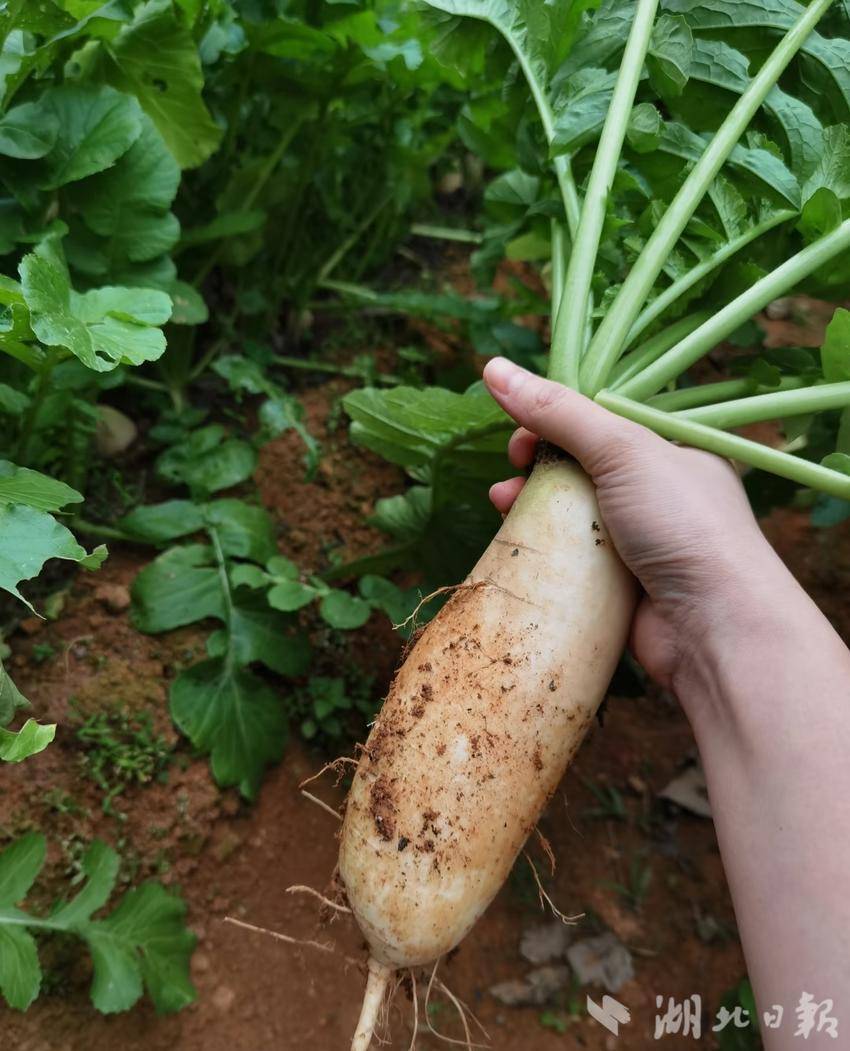 湖北日报客户端讯(通讯员 黄佳莉)三涧溪村的大白萝卜成熟啦!田地里的萝卜棵棵长得饱满敦实,翠绿的缨子绿油油的,村民们趁着晴好天气下地采收,伸手攥住萝卜缨子轻轻一拔,带着新鲜泥土气息的白萝卜就整根出土,表皮沾着薄薄一层湿土,透着满满的原生态鲜味。