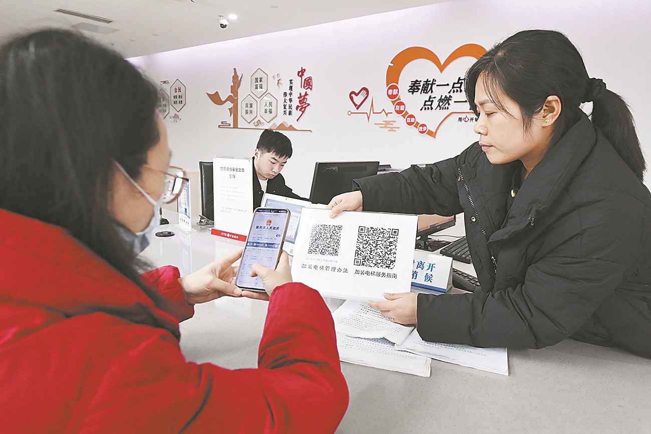 襄阳市政务服务中心住新局窗口工作人员讲解电梯加装政策