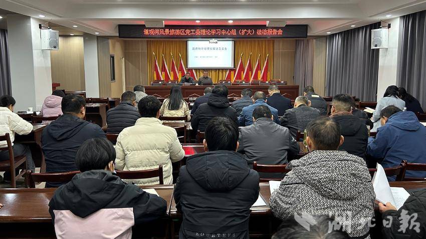 12月12日上午,武汉市新洲区道观河风景旅游区召开党工委理论学习中心组(扩大)法治报告会,道观河管委会领导班子、各站、办、所负责人、村(社区)工作人员参会。本次报告会聚焦政府业务经营权重点难点问题,为辖区干部精准解读政策法规内涵,助力破解工作实践中的法律难题。