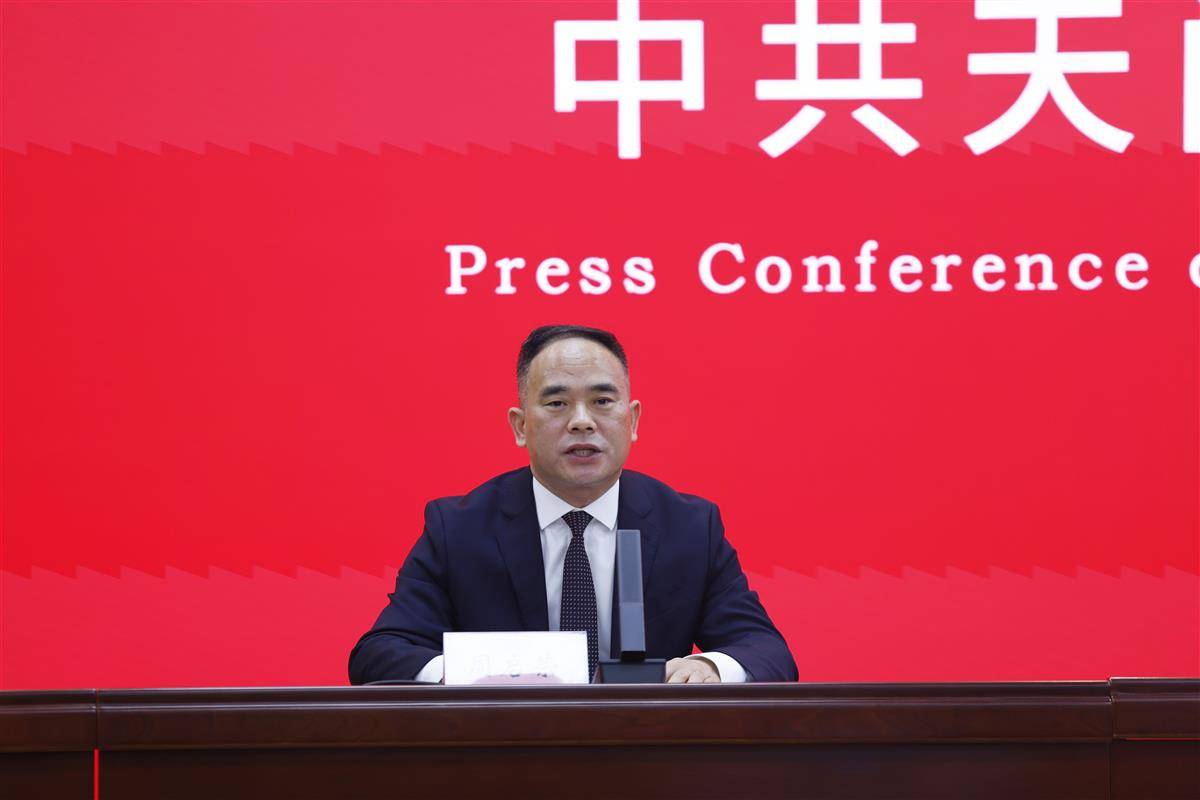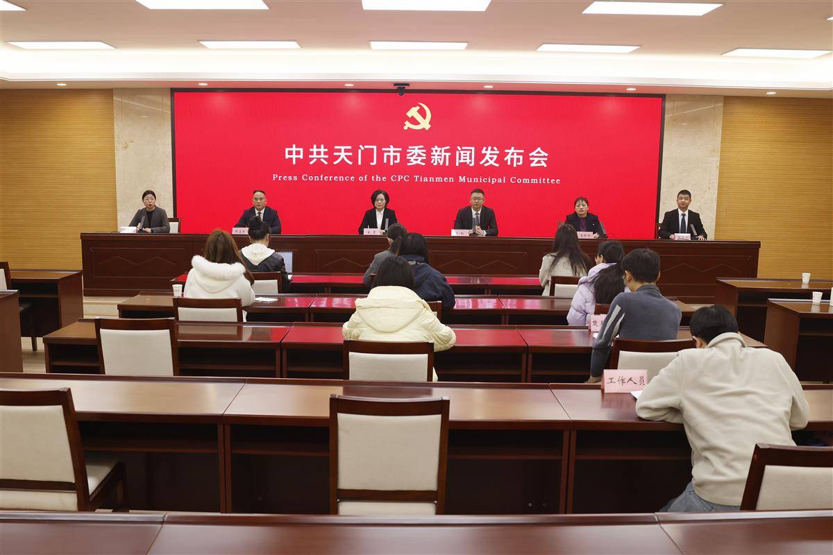 天门市委九届十一次全会新闻发布会现场。