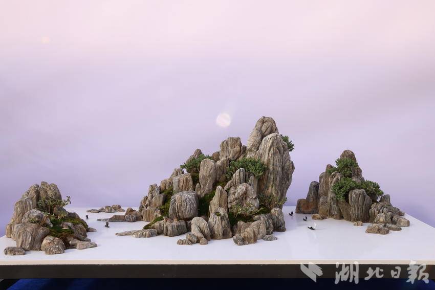 走进花卉盆景展览区,各类精品盆景错落陈列、相映成趣,尽显自然意趣与匠心巧思。松树盆景苍劲挺拔,枝干如游龙般苍劲盘旋,松针疏密有致、翠绿欲滴,尽显勃勃生机;假山盆景以石为基、以木为缀,峰峦叠嶂间藏着山水灵秀,方寸盆器勾勒出万千景致;虬枝盆景更是别具一格,枝干扭曲遒劲,历经雕琢却愈显灵动,每一道纹路都沉淀着岁月韵味。这些精选的盆景作品或雄浑大气、或精巧雅致,将自然之美与人文匠心深度融合,引得参观者纷纷驻足观赏、细细品鉴,不时驻足拍照、交流探讨,满是对盆景艺术的赞叹与喜爱。
