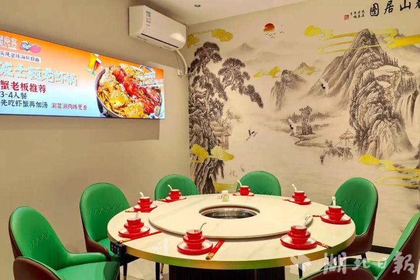 走进店内,暖黄灯光映衬着简约雅致的装修,墙上的帝王蟹海报和特色菜品图直勾食欲。一楼大堂烟火气十足,二楼包间视野开阔,食客可一边品尝美食,一边欣赏武陵不夜城的璀璨夜景,耳畔不时传来婉转的戏曲声,视觉与味觉的双重享受让人沉醉。情侣约会、家庭聚餐、好友小聚,在这里都能找到舒适的就餐氛围,处处洋溢着松弛自在的幸福感。