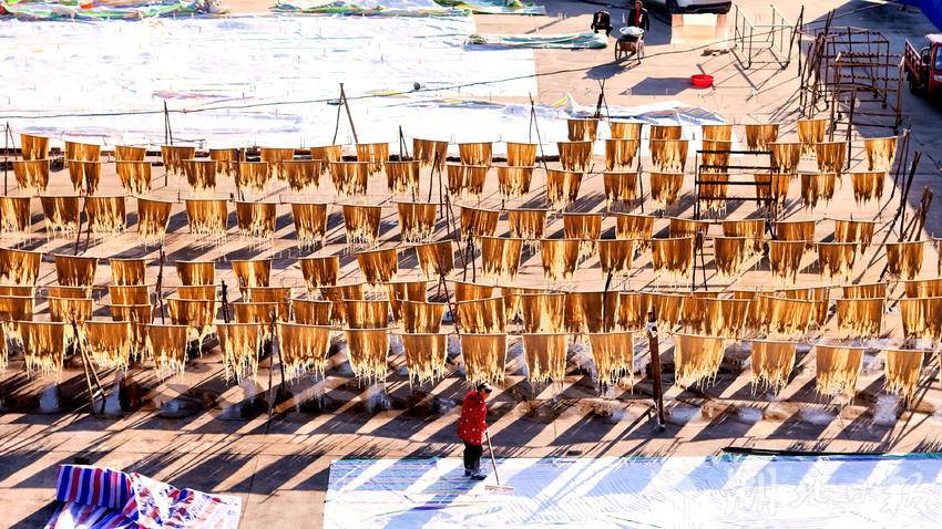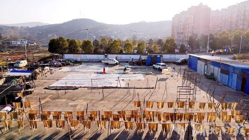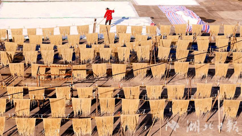 湖北日报客户端讯(通讯员王涛)12月14日,在郧阳区茶店镇长坪村,村民们正在晾晒手工红薯粉条。进入冬季,长坪村几乎家家户户都在忙着制作手工红薯粉条供应市场。