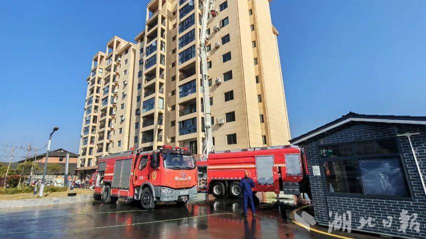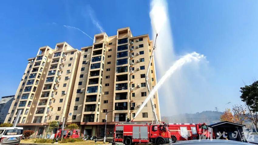 湖北日报客户端讯(通讯员汤鹏 余清清)为持续做好高层建筑和商业综合体灭火救援,强化队伍灭火救援实战能力,近日,竹溪县消防救援大队联合水坪镇康家岭村,在康家岭安置房小区开展高层建筑火灾扑救实战演练。