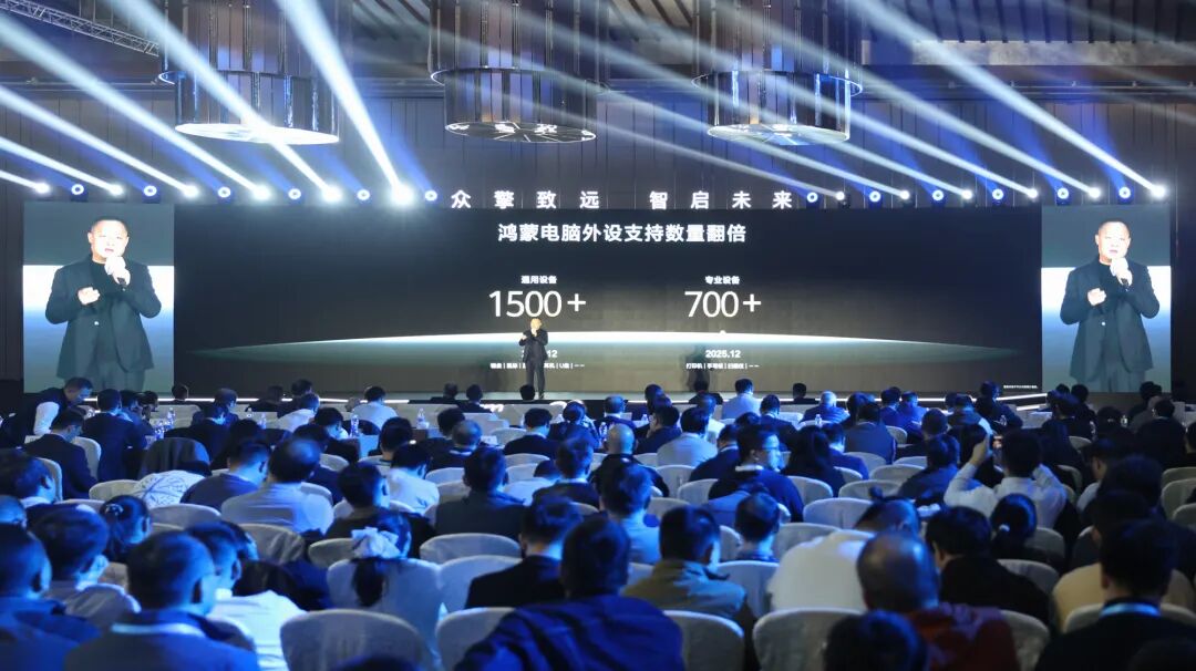 华为擎云HM740是华为第二款鸿蒙商用笔记本电脑,配备70Wh大电池,可连续播放本地1080p视频21小时,是华为迄今续航最长的笔记本电脑。产品可搭载鸿蒙电脑专业版操作系统。该系统基于HarmonyOS 6底座打造,可提供企业和个人双空间,在智能化、安全性和易用性上实现突破。目前,系统免费向企业开放测试。华为终端BG平板与PC产品线总裁朱懂东表示,鸿蒙电脑已实现全链路的自主可控,在产品、操作系统和生态层面均保持先进性。大会透露,鸿蒙生态日益繁荣,生态内的应用已从2000款迅速发展至12000款以上,终端数量达100万台。华为终端平板与PC产品线总裁朱懂东作现场演讲为接入鸿蒙终端,鼠标、手写板等外设厂商也加速融入鸿蒙生态。朱懂东介绍,去年12月,位于光谷的鸿蒙生态(武汉)创新中心启用星汉实验室,作为全国首家为外设厂商提供鸿蒙兼容性测试服务的平台,现已认证超1500款打印机、扫描仪、鼠标等外设设备,覆盖奔图、恒安捷、理光、东芝、得力等品牌。星汉实验室主任罗勋陶解释:“一款外设设备要想获得鸿蒙认证证书,必须通过温控、功耗等指标考验,确保和鸿蒙终端稳定兼容。”
