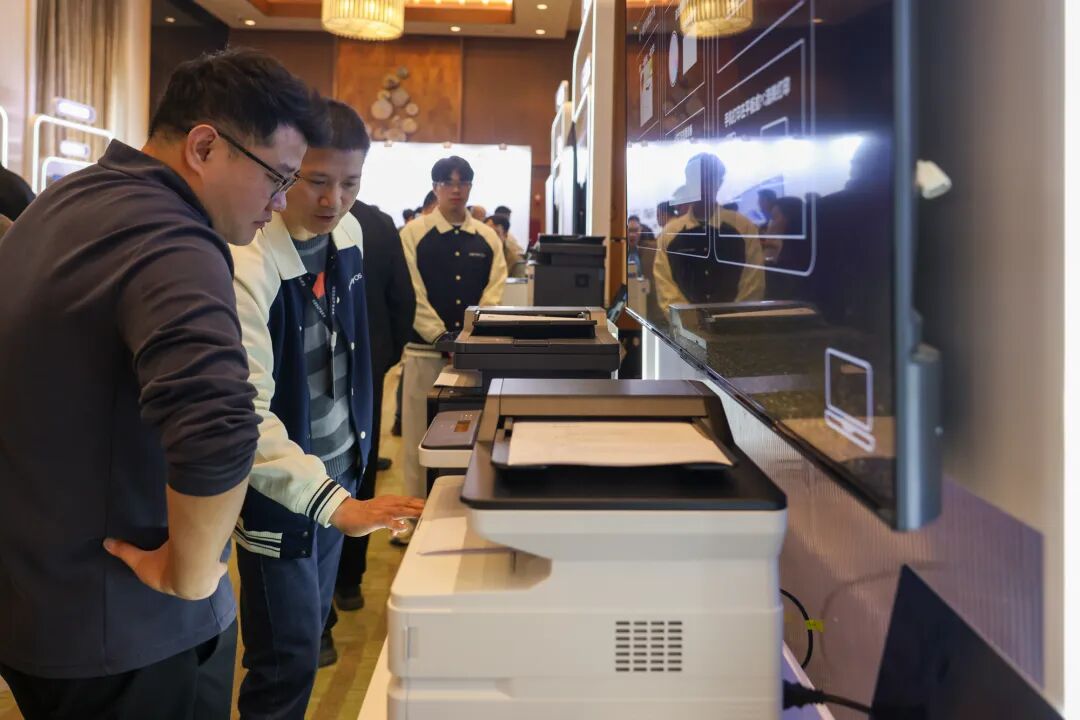 嘉宾体验获得鸿蒙认证的奔图、得力打印机