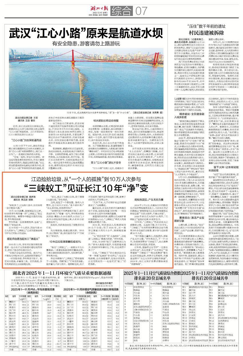 对此,70岁的“蚁工”吴群林深以为然:“参与人数越来越多,垃圾却越来越少,这说明环保意识扎了根,长江真的干净了!”
