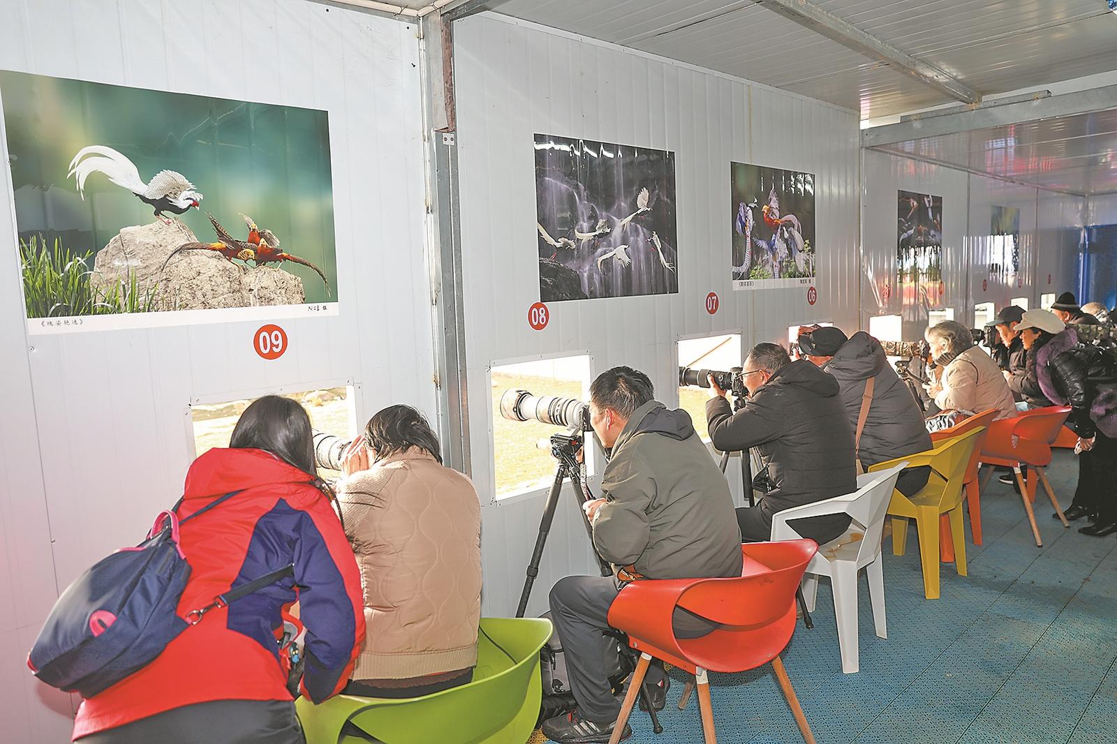 十二月十三日,观鸟爱好者在襄阳普罗旺斯薰衣草庄园观鸟站拍摄。(来源:襄阳日报