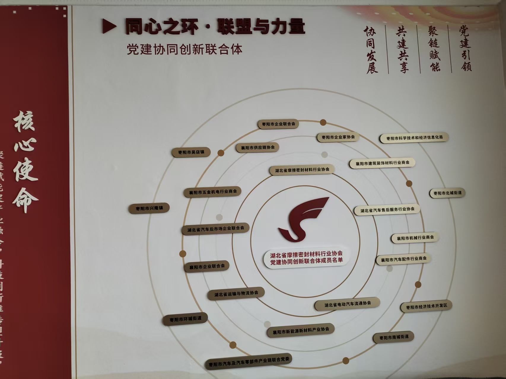 作为全省摩擦密封材料行业的“领头雁”,湖北省摩擦密封材料行业协会自2016年成立以来,已助推枣阳市跻身全国第二大汽车摩擦材料生产基地、全国四大刹车片生产基地之一。此次党建阵地的启用,是协会深化省级党建协同创新试点建设的核心举措,更是党建链串起产业链的关键载体。阵地以“摩力五联”工作机制为支撑,整合活动展示、会议商谈、资源链接、驻点办公等多元功能,成为凝聚行业力量的“红色枢纽”。