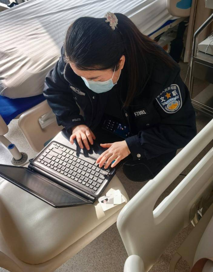 接听电话的叶琳警官在了解情况后,立即安抚家属情绪,并承诺想办法解决。令玉女士没想到的是,第二天,叶琳警官团队便携带专业设备出现在了病房。为了在有限空间内完成高质量信息采集,民警们动作轻缓,单膝跪地寻找最佳拍摄角度;老人手指不便,他们更是耐心地反复尝试采集指纹。整个过程专业而体贴,尽可能减少对病人及其他患者的打扰。
