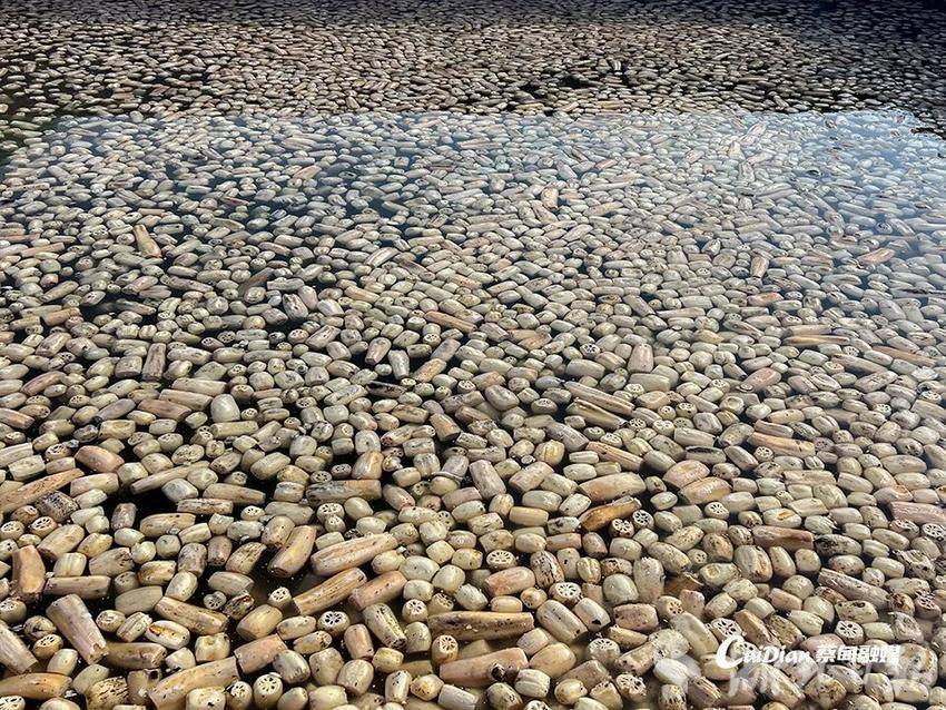记者在产地仓加工车间看到,工人们正熟练地进行清洗、分拣,随后鲜藕被送入室外成排的浸泡池,通过盐水处理锁住水分、延长保鲜期,实现标准化加工与储存。