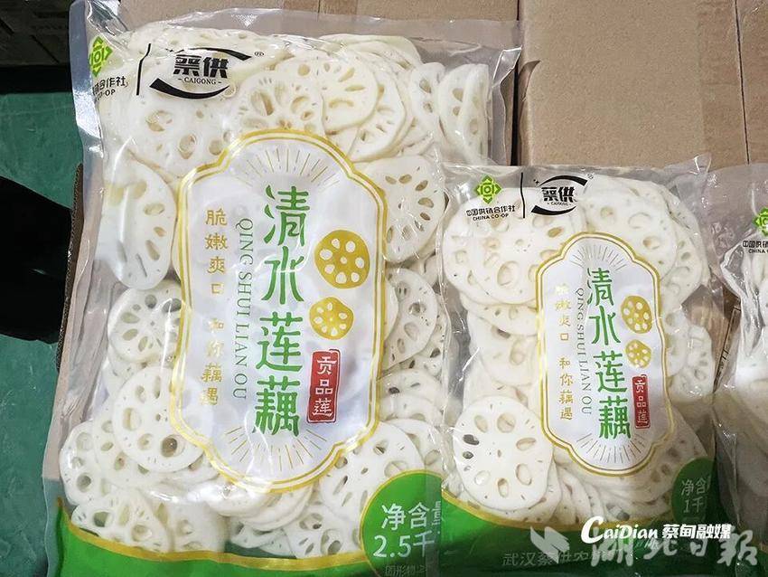 经过产地仓初加工的莲藕,会被送往合作企业进行切片包装,变身泡椒藕片、清水藕片等产品。“清水藕片每天销往成都就达50吨,供不应求。”王荣华说。