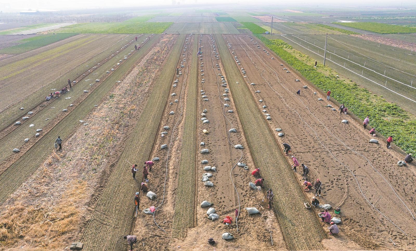 12月11日,襄城区欧庙镇村民正在种植麦冬。