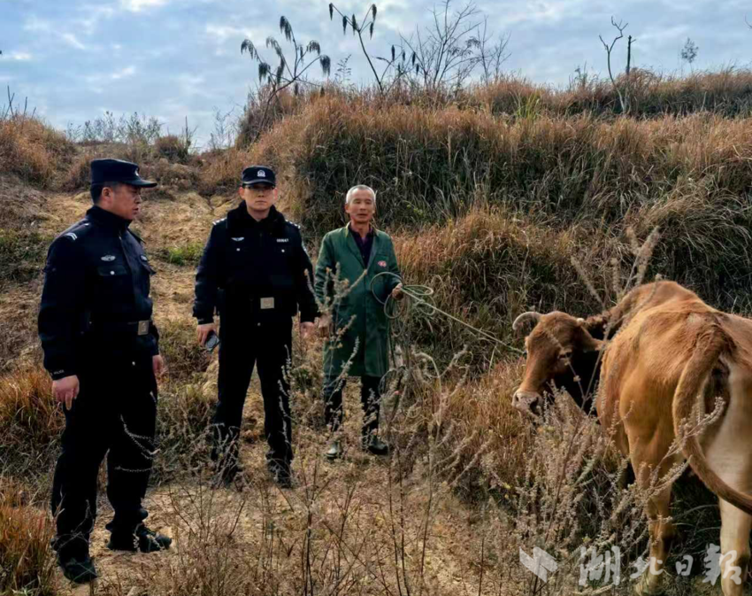 湖北日报客户端讯(通讯员邹辉、丁祚龙、陈依林)“感谢警察同志,你们真是我家牛的‘救命恩人’!”12月15日22时许,崇阳县白霓镇余耕村一处偏远山头,村民丁大爷紧紧牵着失而复得的耕牛,对着前来救援的崇阳县公安局白霓派出所民辅警连连致谢。