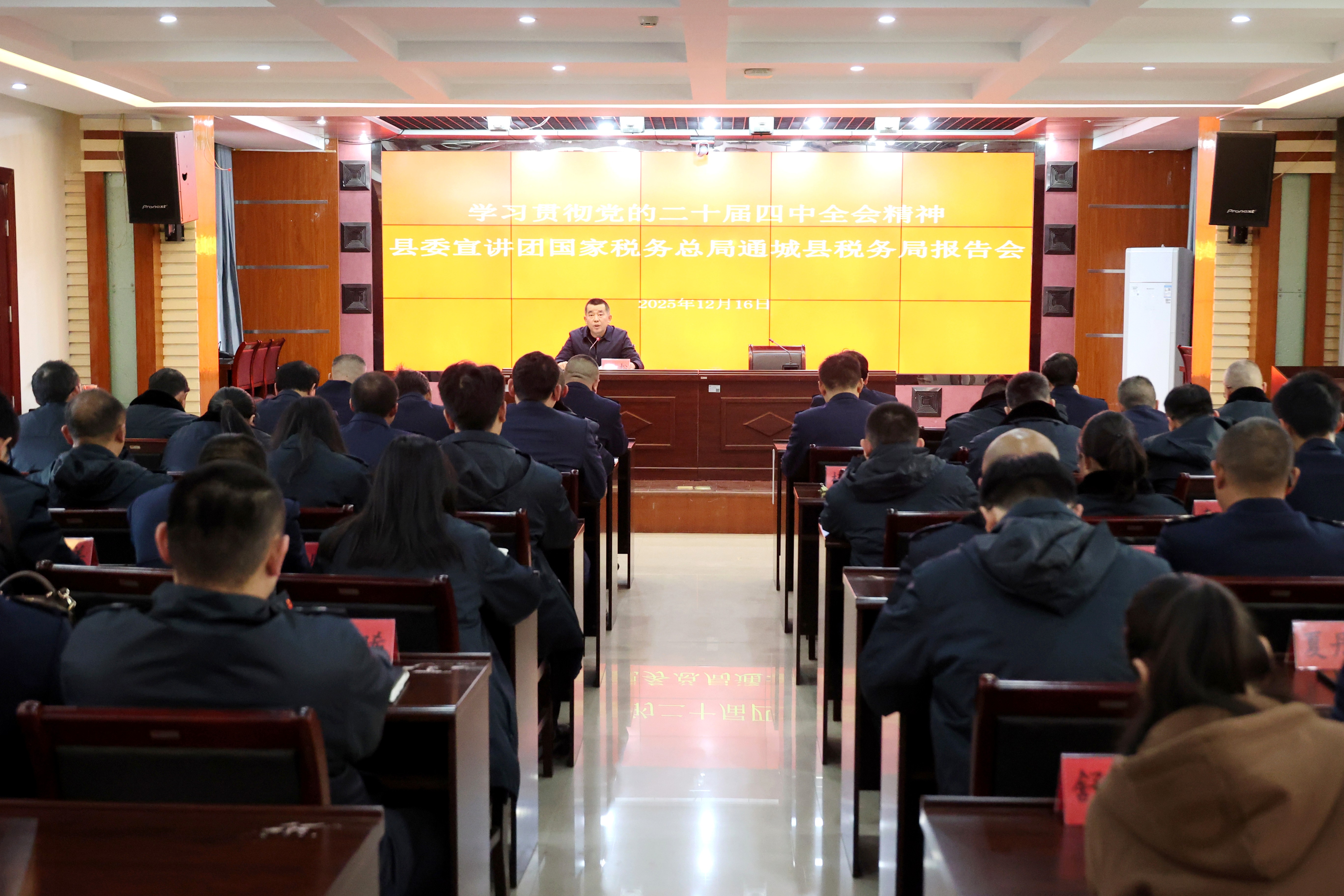 湖北日报客户端讯(通讯员 戴唯玮)12月16日,通城县税务局举行学习贯彻党的二十届四中全会精神宣讲报告会,推动全会精神在全县税务系统走深走实、见行见效。县委宣讲团成员、县委统战部副部长、县工商联党组书记杨松作专题宣讲。