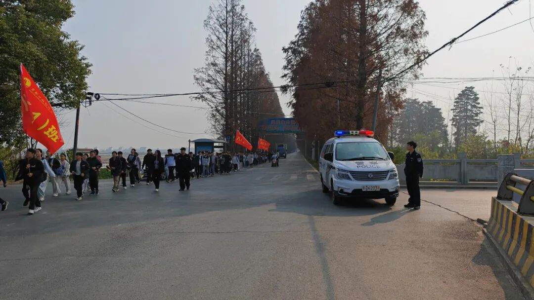 12月9日12时,监利市黄歇口镇初级中学组织七、八年级共369名学生开展以“徒步砺意志,青春践初心”为主题的户外徒步实践活动。为了确保活动安全、顺利开展,黄歇口派出所与黄歇中学在筹备阶段做了周密部署。在活动前,黄歇口派出所与学校负责人带领活动小组成员进行实地考察,精心确定活动地点与路线,反复评估沿途安全状况,预判各类突发情况发生的可能性。活动中,黄歇口派出所专门安排了五名警力和一辆警车全程护送,为师生提供坚实的交通安全保障。全体学生在班主任和科任教师的带领下,高举班旗,精神饱满地踏上徒步征程。