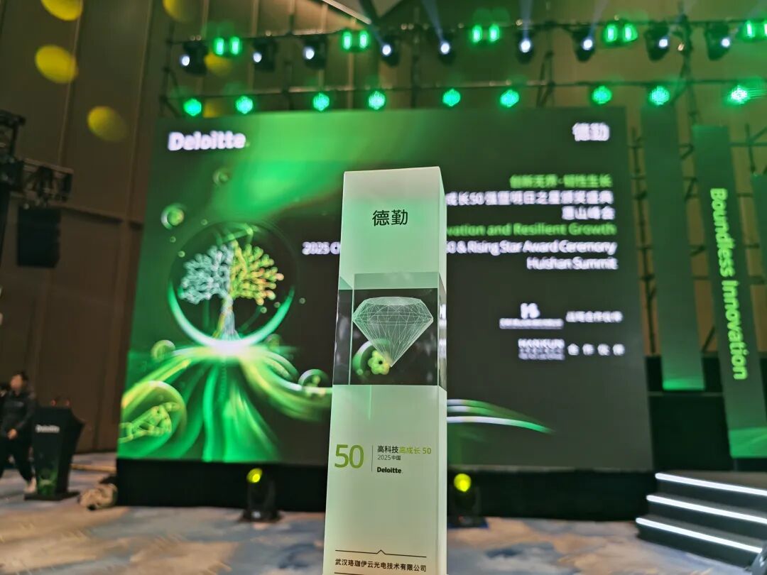 在光谷创业第五年,12月16日,由武汉大学创业团队组成的武汉珞珈伊云光电技术有限公司(以下简称“珞珈伊云”)第二次捧起德勤中国高科技高成长50强奖杯。
