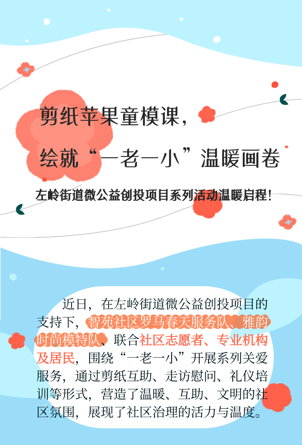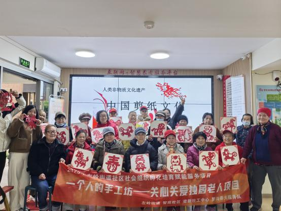 12月12日上午,智苑社区老年活动中心内红纸翻飞、笑语盈盈。社区社会组织罗马春天服务队主办的独居老人关爱剪纸活动顺利开展。活动以生肖马为载体,创新采用“低龄老人帮扶高龄独居老人”的互助模式,吸引30余位独居老人、低龄志愿者和居民参与。
