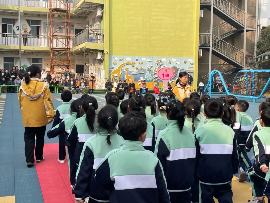 幼儿园内一片欢声笑语,孩子们穿着整齐,在老师的带领下、在家长们充满爱和期待的目光中,用嘹亮的口号、整齐的步伐步入会场,充分展现了他们的朝气与活力。