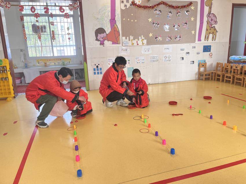 在游戏环节中,孩子们手持游园集福卡,兴奋地穿梭在游戏场之间,每个游戏闯关成功即可盖章,集齐8个印章后可兑换礼物。趣味游戏既让家长和幼儿享受着快乐的亲子时光,也体会到了亲子游戏的魅力。