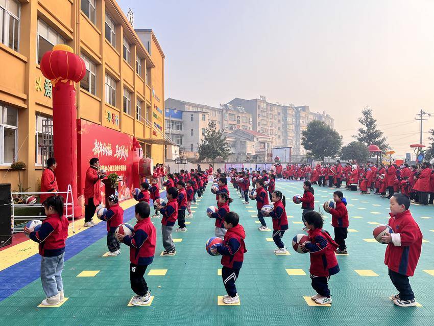 小小的篮球,动感的旋律,灵动的步伐,一群群着装靓丽、精神饱满的孩子们,跟着音乐的节奏灵活地变换着各种拍法,配合默契的队列和队形转换,整齐划一的花样动作,篮球在孩子们的小手下似精灵般跳动飞舞!