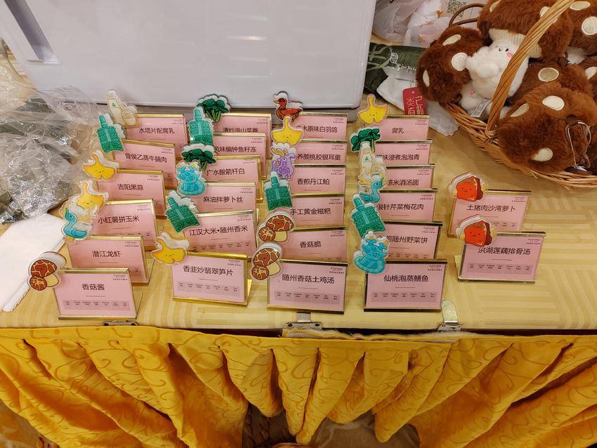 走进接待餐厅,嘉宾手中的餐卡已成为“微型文化载体”。这张小巧的卡片上,正面印着憨态可掬的香菇卡通形象,配文“随州泡泡青——冬日里的绿色珍馐”;背面则以简约线条勾勒编钟轮廓,将随州最具代表性的农产与文化符号浓缩其中。“一张小餐卡,既是用餐指南,也是可带走的纪念品。”嘉宾们纷纷将餐卡收好,成为随州之行的特殊念想。随州市公务服务中心工作人员介绍,餐卡设计经过反复打磨,旨在让“小物件”承载“大特色”,让嘉宾在细节中感受随州韵味。
