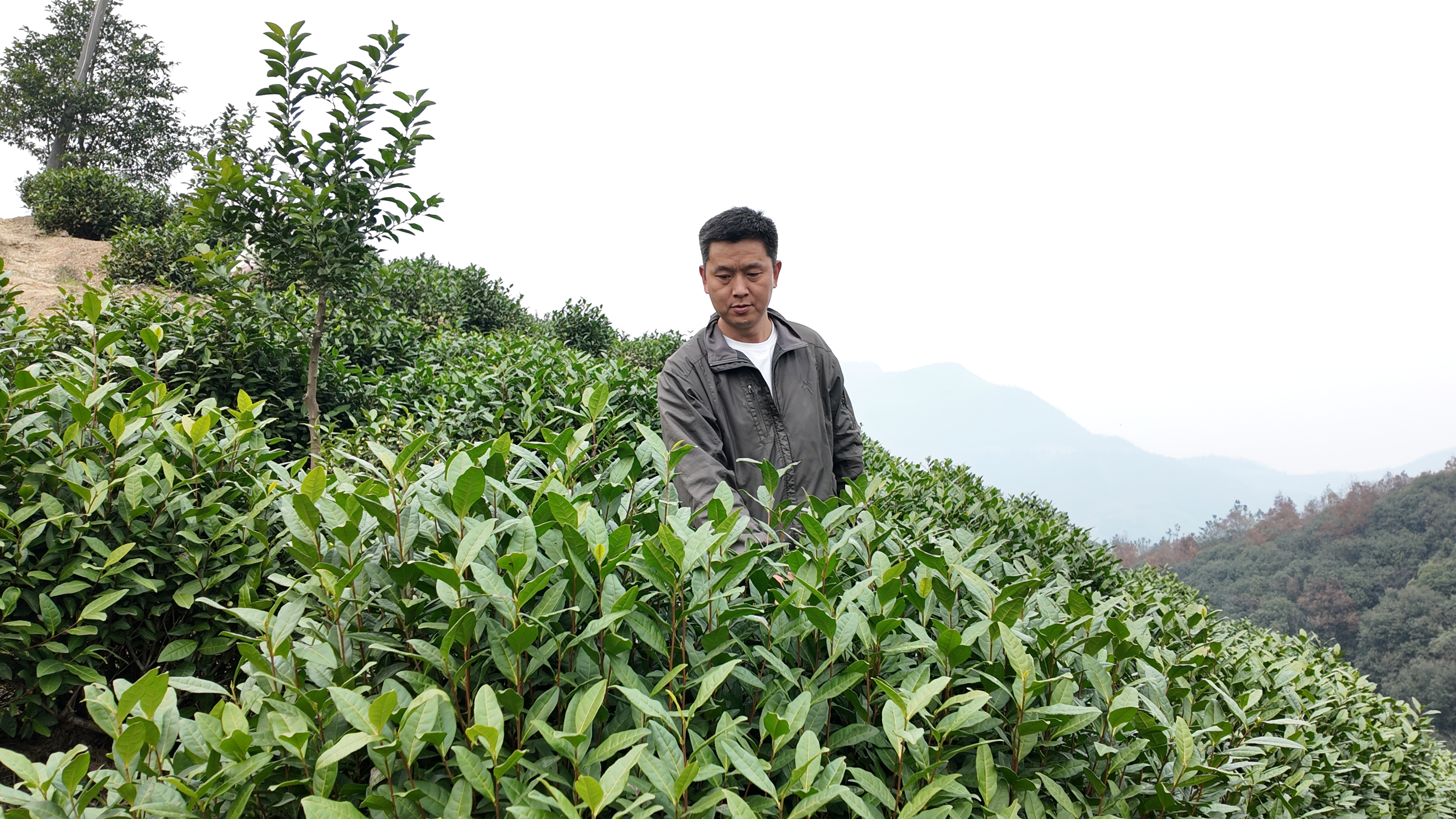 秦书胜在茶园勘察茶树生长状态。(湖北日报全媒记者 肖露 摄)