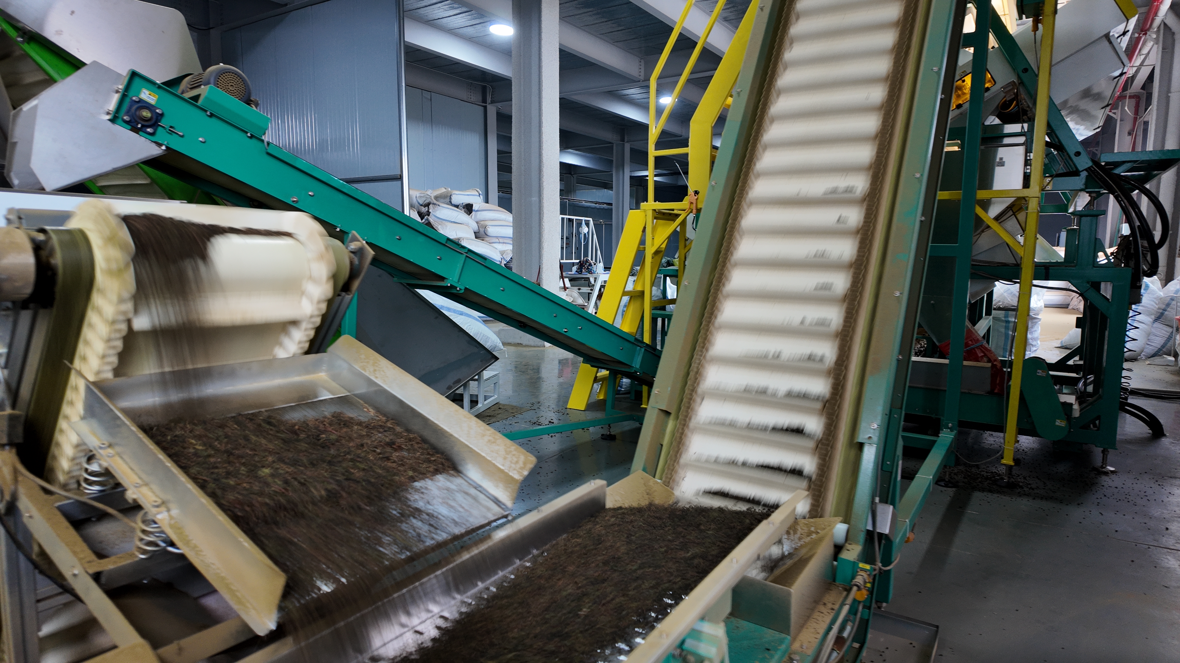走进阳新县农业科技园大宗茶厂,只见烘干后的茶叶顺着输送管道倾泻而下,经过色选机精准识别后,茶梗、碎叶、优质茶叶被分流至不同出口,高效有序。