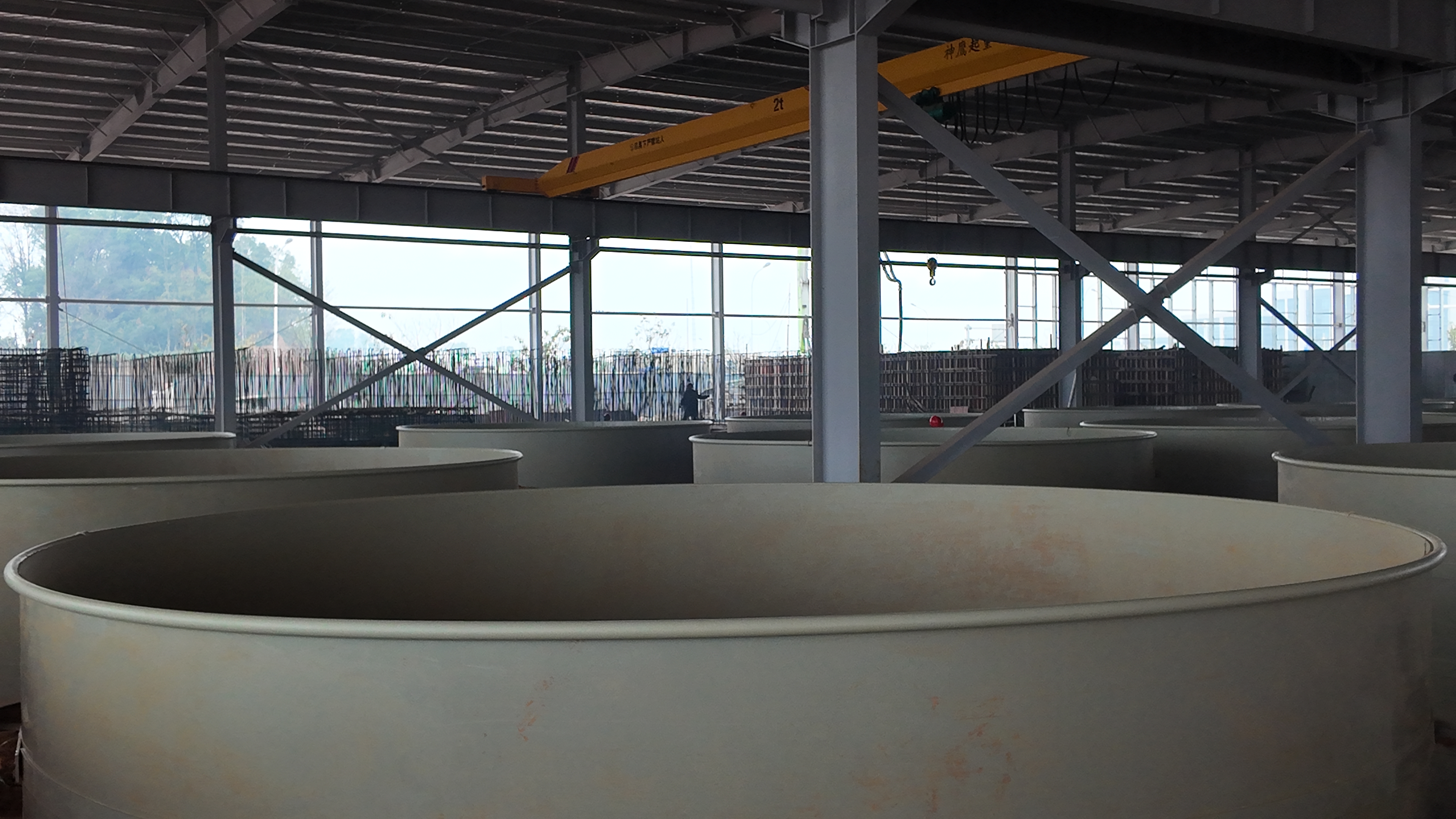 12月12日,在阳新县率州管理区食来运转网湖鳙鱼深加工项目基地,一排排圆形水池整齐排列,几名工人正围着水池进行最后装修调试,为月底的投产做最后的准备。