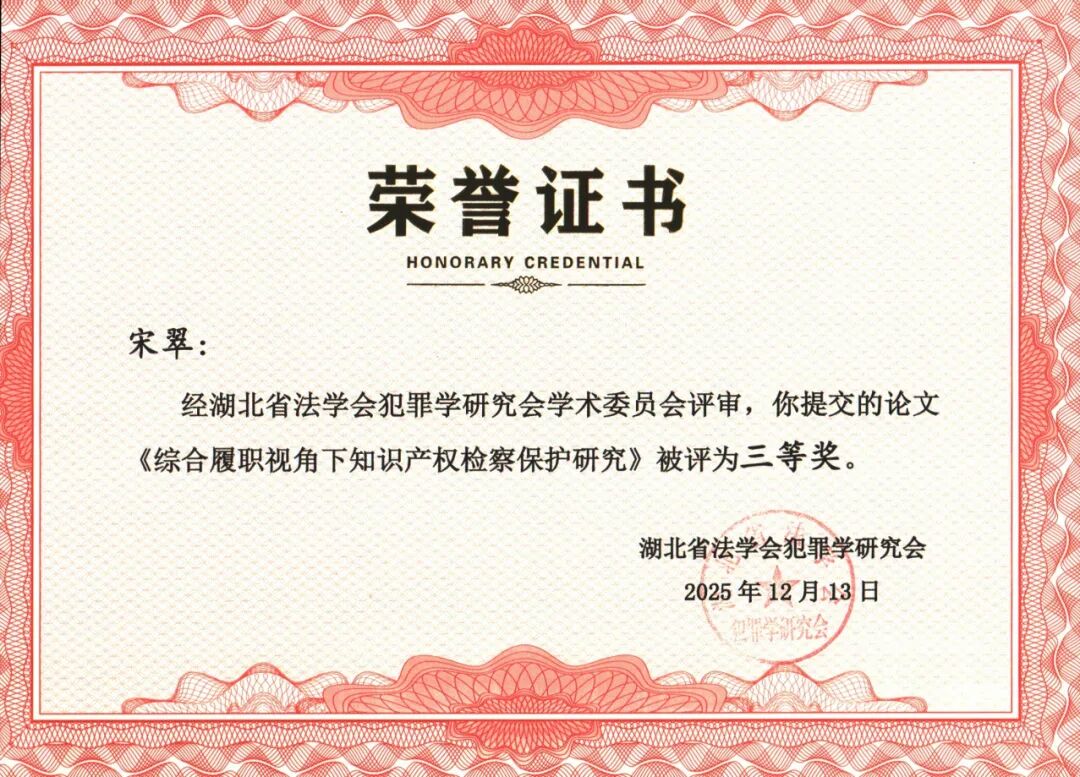 12月13日,湖北省法学会犯罪学研究会2025年年会在湖北武汉召开。华容区检察院8篇论文在年会中获奖,二等奖2篇、三等奖6篇。
