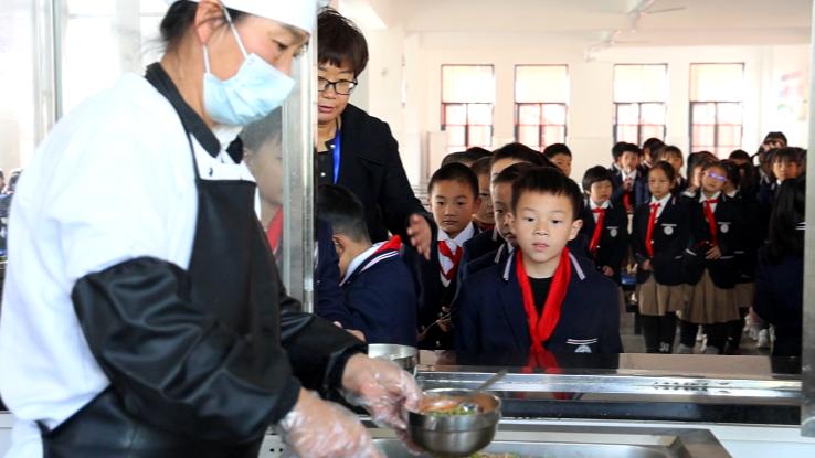 红安县实验小学虎门校区家长程荣华说:“现在食堂价格透明、菜品也很丰富,孩子说学校的饭菜比家里好吃,我们特别放心。”
